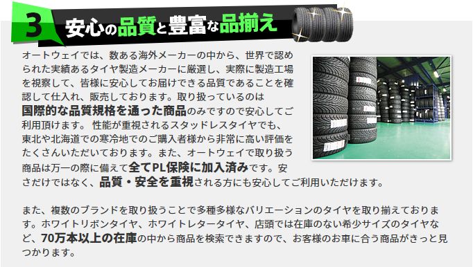 品質と品揃え、サポートを徹底的に充実させていて、タイヤ販売実績と業界最安値でNo.1の実績を持っています。
