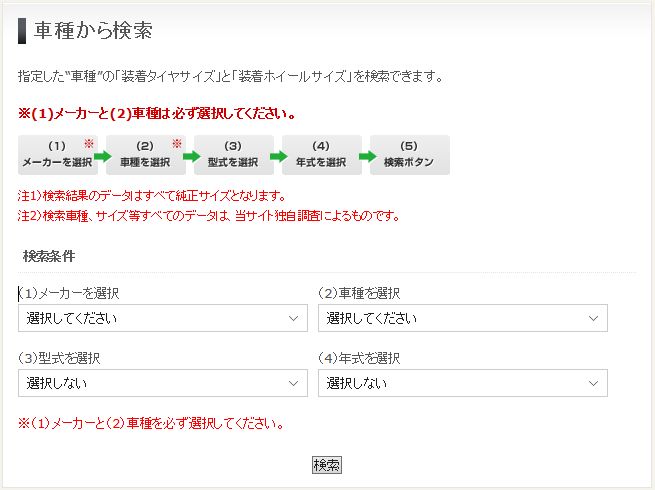 タイヤサイズを車種から検索したい方は?