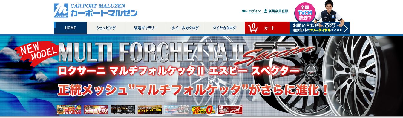 「カーポートマルゼン」は、CMでもおなじみのタイヤやホイールが安い通販サイトです。